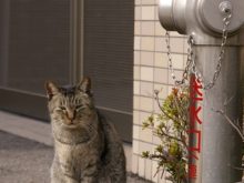 住吉神社の裏手にいたねこ。近くのマンションの住民がカリカリをあげている…