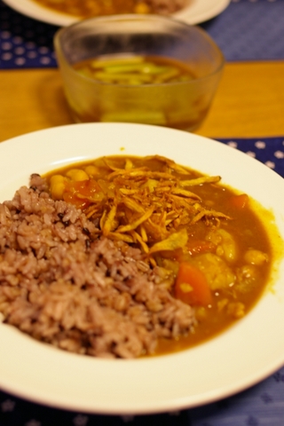 ひよこ豆のカレー 投稿者: JNS 投稿日: 2007-12-292023-01-08 昼から水で戻したひよこ豆・じゃがいも・玉ねぎ・にんじんを圧力鍋で煮て、桜井食品の「ベジタリアンのためのカレー」を加えてできあがり。トッピングにごぼうの天ぷらを散らしてみた。 続きを読む 前の記事 ごぼうの天ぷら次の記事 納豆きんちゃく