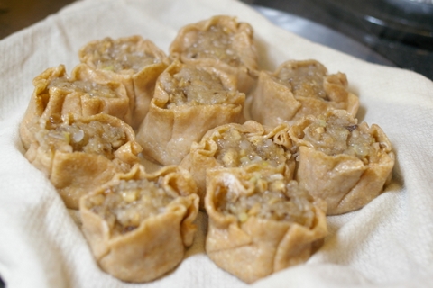 皮で具を適当に包み、蒸し器で15分蒸す(大きさにもよる)。