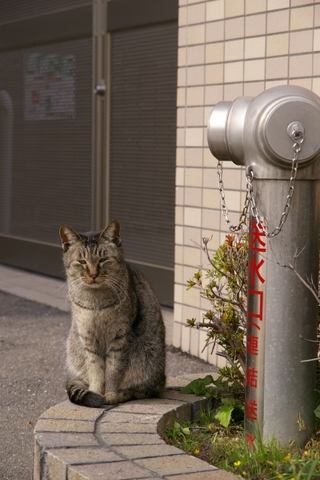 住吉神社の裏手にいたねこ。近くのマンションの住民がカリカリをあげているらしい。